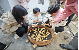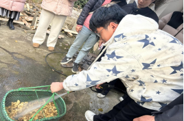 学生动手清洗九华黄精 清洗黄精并将其上笼